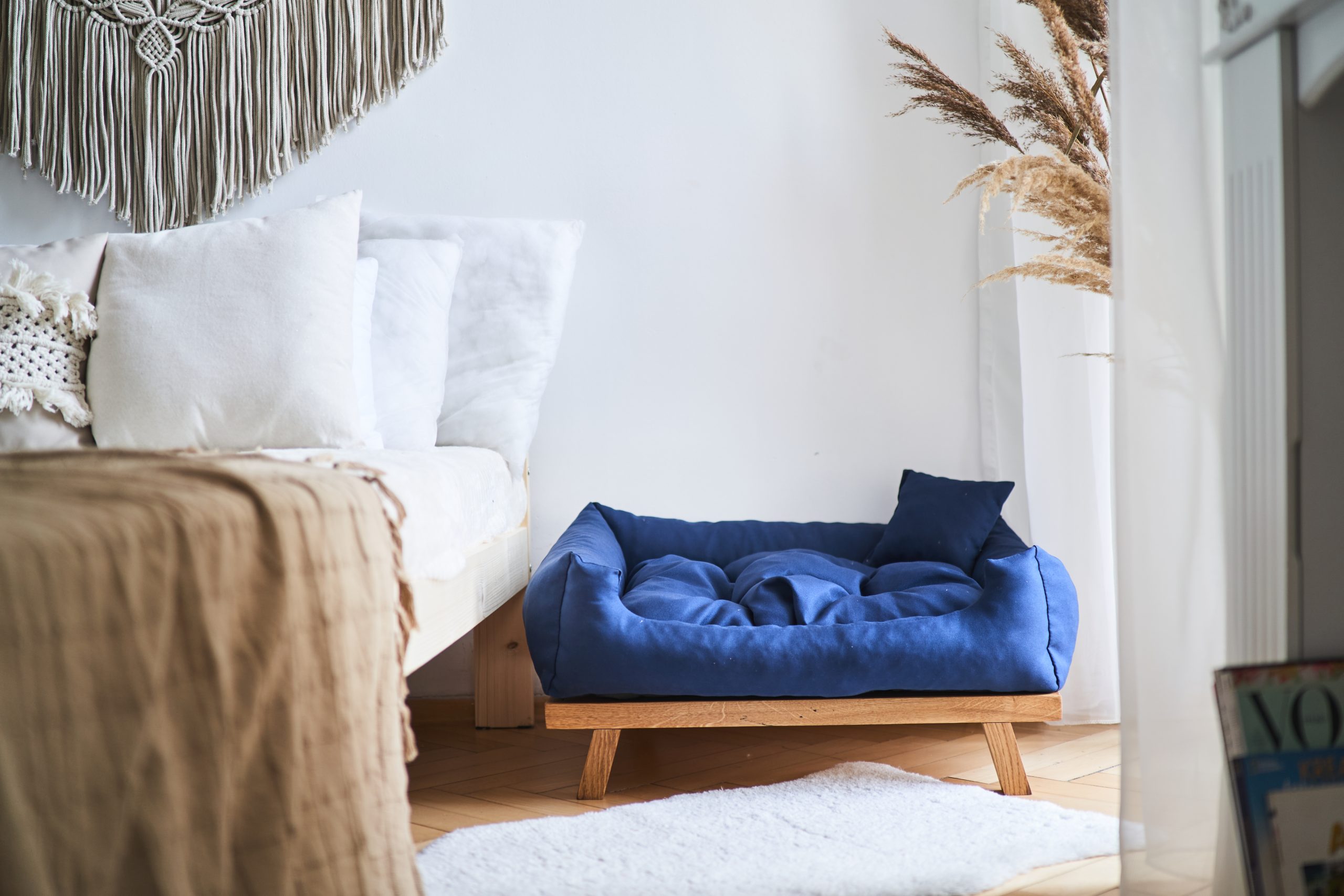 Do legowiska załączona jest również poduszka w pięknym granatowym kolorze. Poduszka została wykonana z miękkich, ale bardzo wytrzymałych tkanin (z których szyte są np. kanapy). Materiał użyty do uszycia poduszki jest odporny na zarysowania oraz posiada lekkie właściwości wodoodporne. Użyty materiał sprawia, że jest on bardzo prosty w utrzymaniu czystości – wystarczy przetrzeć go delikatnie mokrą ścierką z detergentem i wysuszyć.